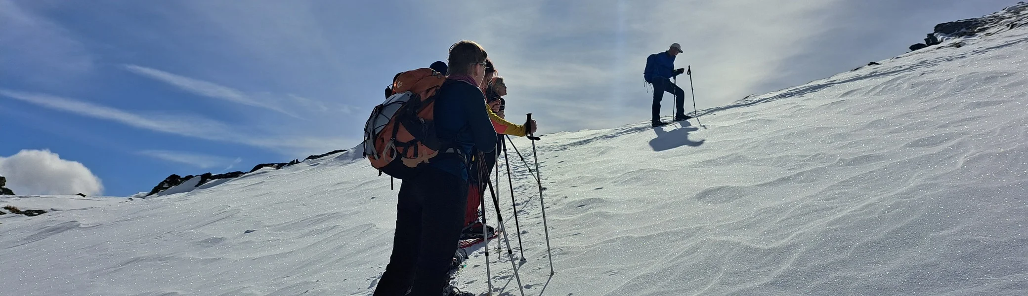 Leider hatte sich das schöne Wetter vom Vormittag verzogen, Nebel kam auf und dazu etwas Schneefall. Nach einem Kaffee und einer wärmenden Suppe fasten wir wieder Mut und entschlossen uns etwas Lawinentraining mit unseren LVS- Geräten und den Sonden zu machen. Für größere Touren war das Wetter nicht mehr geeignet. Nach dem erfolgreichen Abschluss der Übungen rückten wir wieder ein und verbrachten den Nachmittag und Abend in der gemütlichen Hütte. Bei den meisten von uns gingen am Abend schon bald die Augen zu und so freuten wir uns auf eine lange und erholsame Hüttennacht.